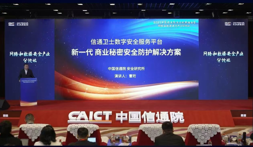 为应对日益复杂的信息安全挑战,不忘使命担当,中国信息通信研究院(以下简称“中国信通院”)与广东九联科技股份有限公司(以下简称“九联科技”)强强联合,倾力打造新一代商业秘密安全防护解决方案——信通卫士。并于12月24日在“2025中国信通院深度观察报告会”网络和数据安全产业分论坛上重磅发布。这是一场对国家信息安全战略的坚定响应,更是一场关乎未来的信息安全!